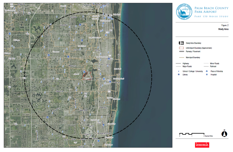 PBC DOA worked on a noise study at LNA called a "Part 150 Study." Title 14 of the Code of Federal Regulations Part 150 (14 CFR Part 150) sets forth a process for airport proprietors to follow in developing and obtaining FAA approval of programs to reduce of eliminate noncompatible land use. Additional information on this regulation and related FAA guidance can be found on FAA's website here. A formal submission to the FAA under Part 150 includes documentation for two principal elements: (1) the Noise Exposure Map (NEM) and (2) the Noise Compatibility Program.